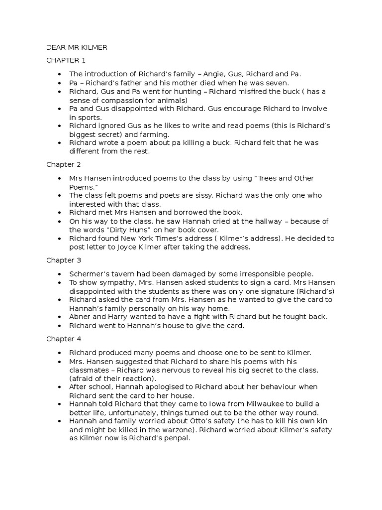 Dear Mr Kilmer Characters Notes Pdf